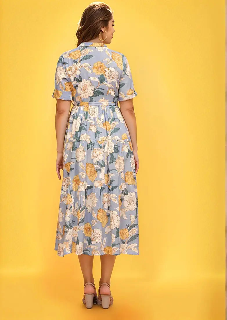 VK Women's Floral Printed Maxi Western Dress Midi Party Dress for Women